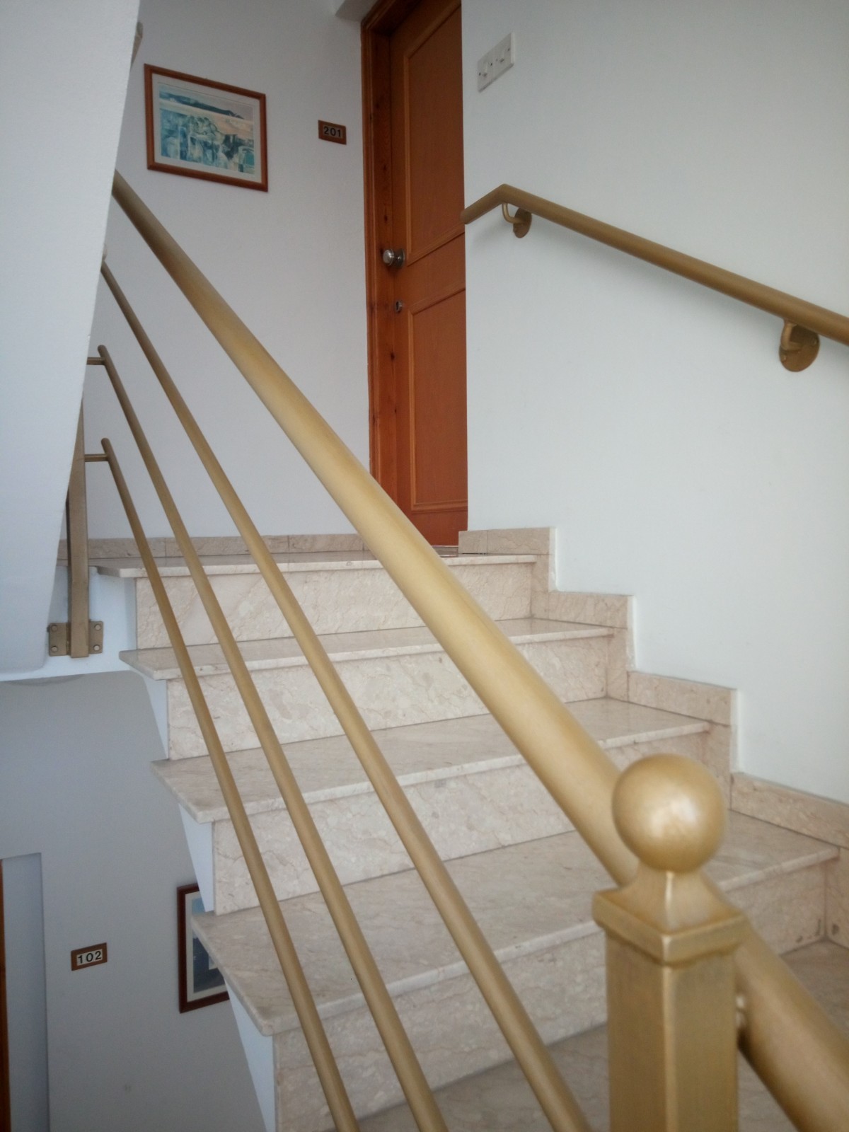 The apartment is on the second floor accessible by stairs, of a small very well-maintained block with four units.