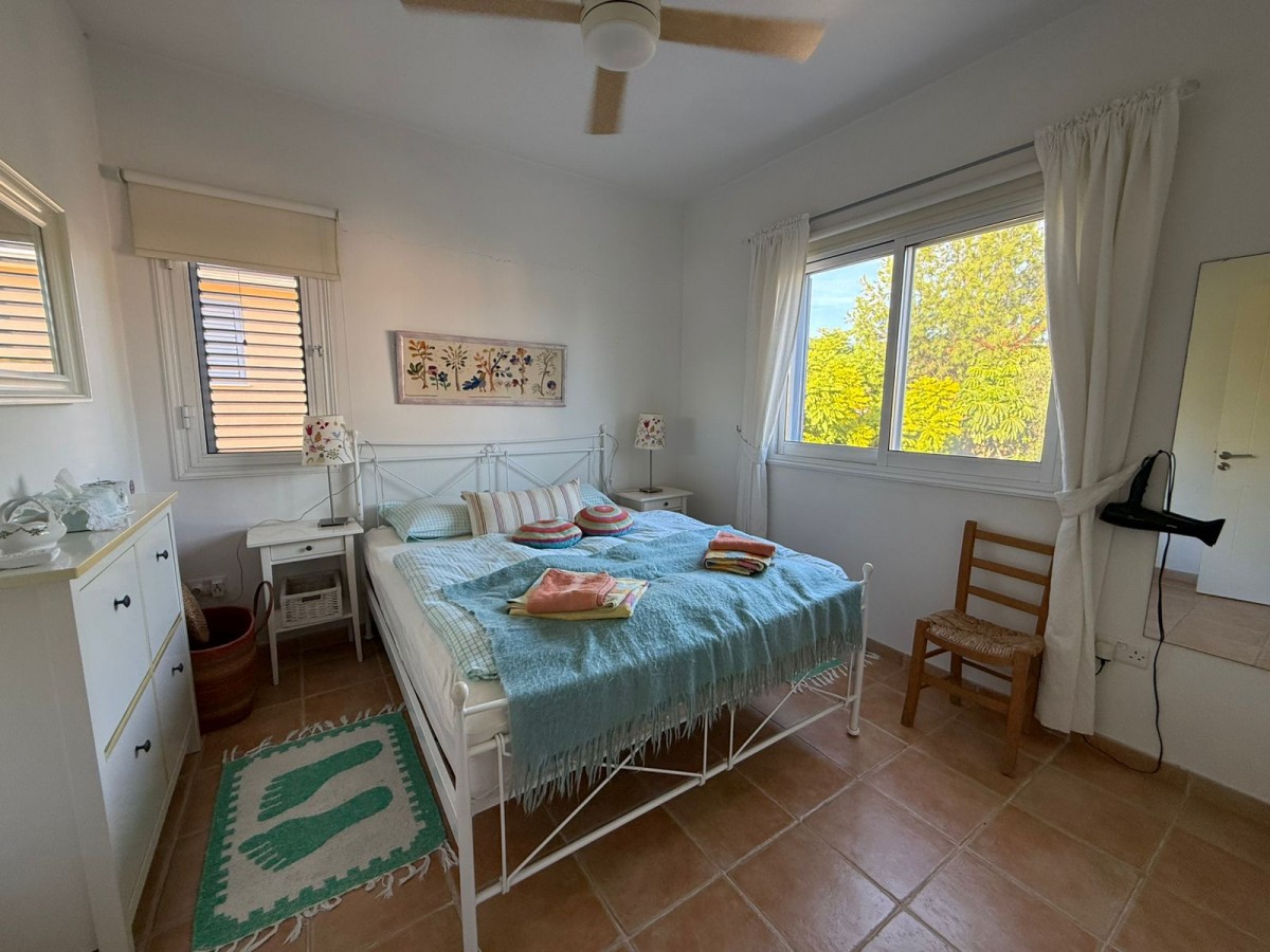 This third floor apartment has a spacious lounge, dining room and open plan kitchen leading out to the balcony. The apartment faces the pool and park area. Here you can enjoy the relaxing atmosphere Paphos has to offer. All the bedrooms are spacious, have large floor to ceiling wardrobes, ceiling fans and air conditioning in each room.