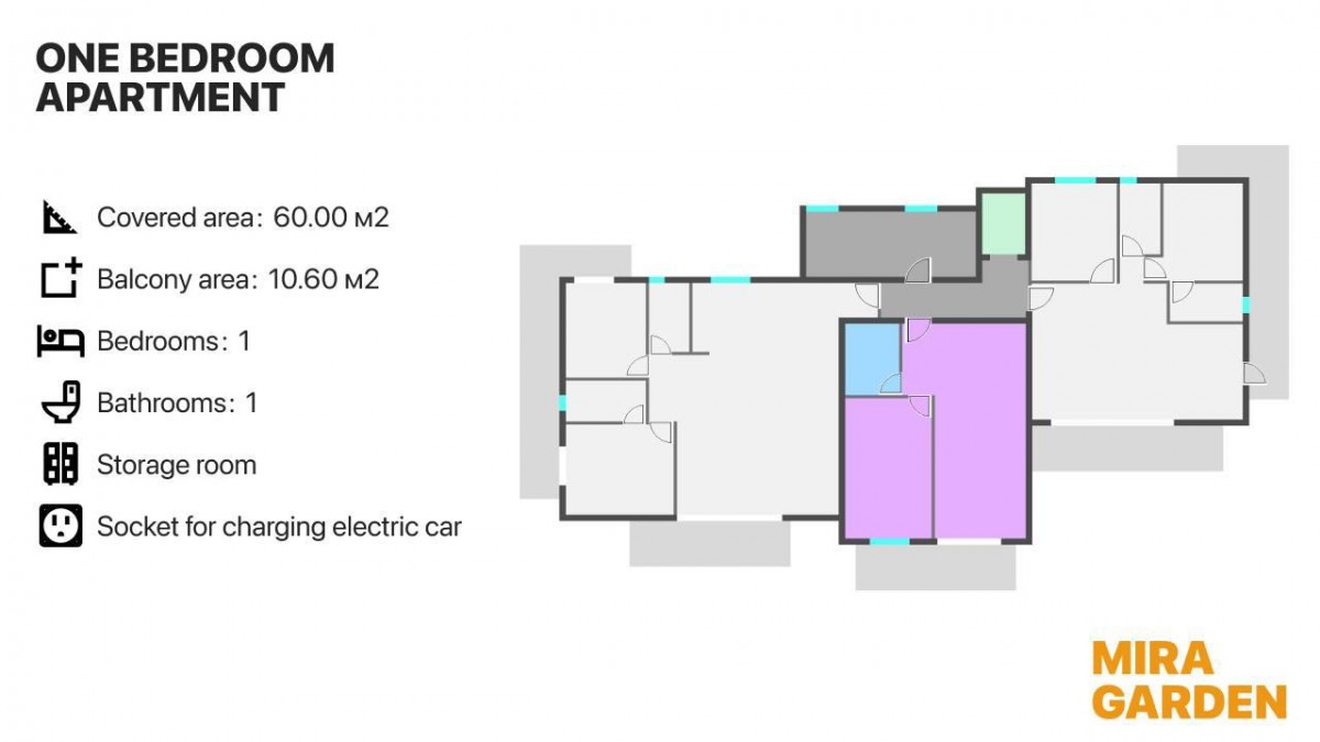 - 1 bedrooms and 1 bathroom,