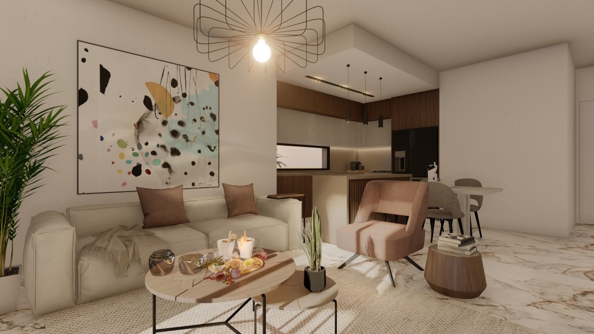 This is a 2 bedrooms/ 2 bathrooms contemporary apartment in Kissos Gem located in Kissonerga. The project is currently under construction at the bricking stage and due to deliver by Nov 23.