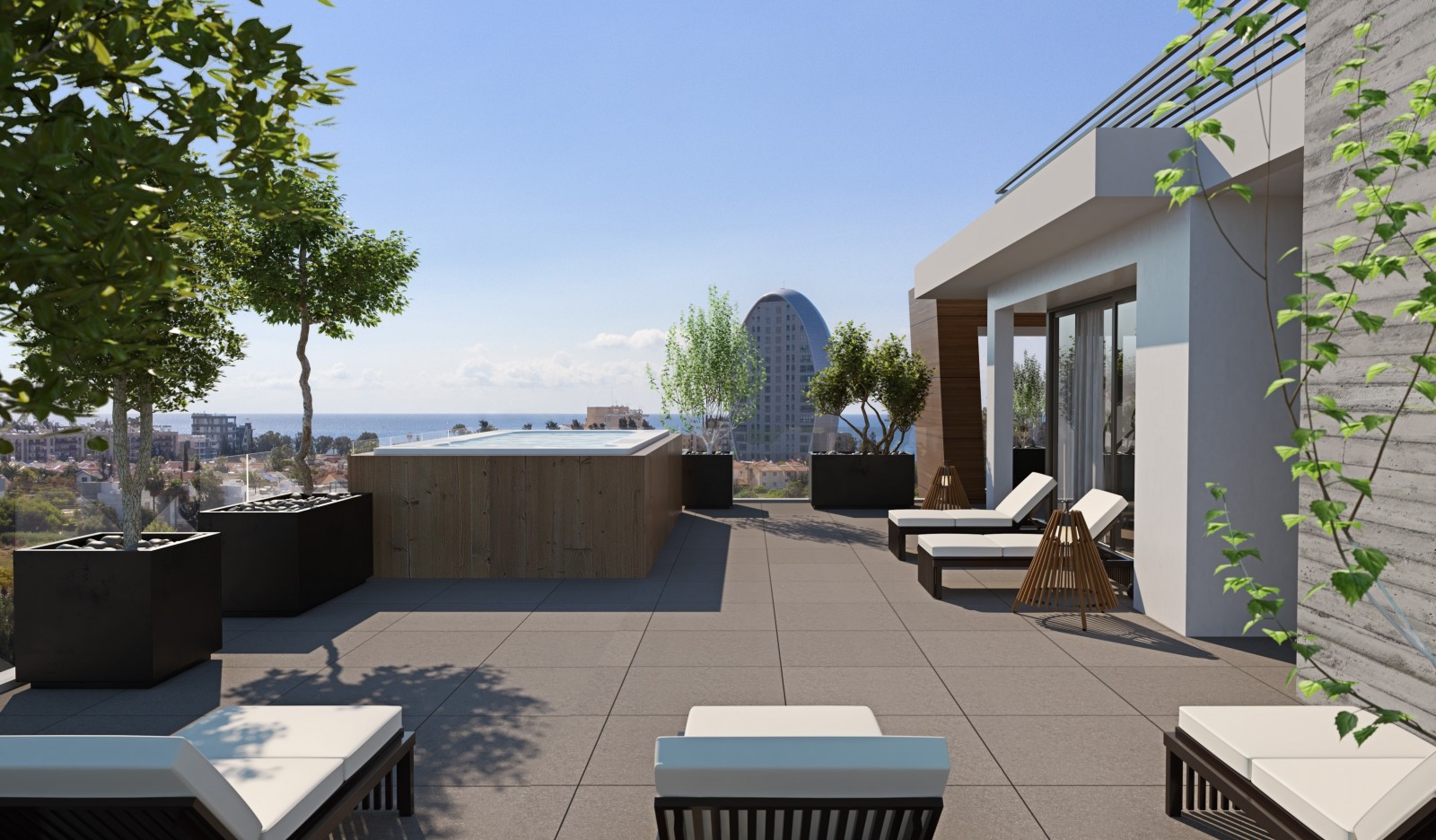 Креативные дизайнерские навыки привели к многоуровневой структуре, которая удобно расположена в его окружении. Впечатляющий фасад акцентирован широкими окнами в полный рост, которые наилучшим образом отражают городской стиль побережья. С точки зрения удобства, все аспекты безопасности, комфорта и удобства владельца были тщательно интегрированы, включая безопасный доступ, лифт на все этажи, общий бассейн и солнечную террасу, частное хранилище и парковку.