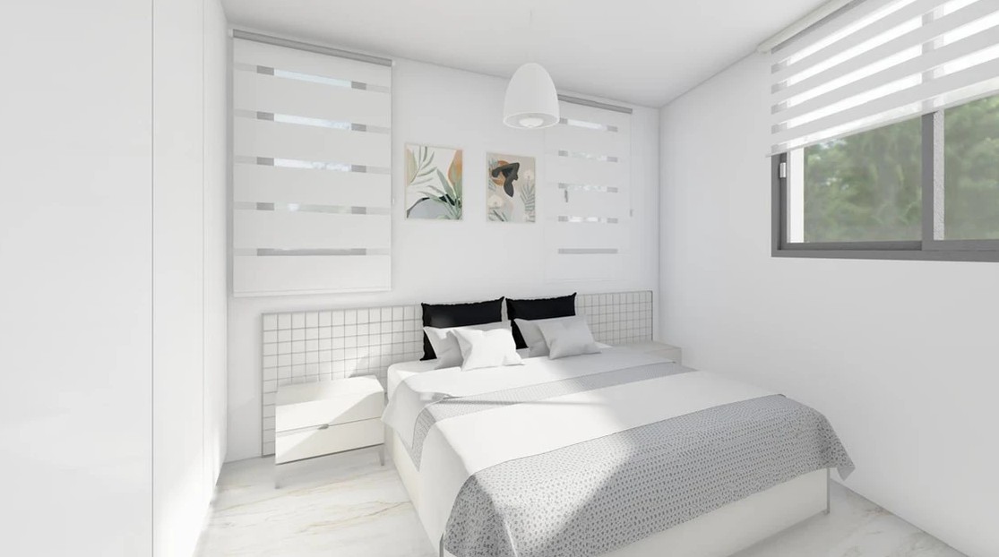 Interior comprises of an open plan living with direct access to the covered balcony, dining and kitchen area, two double bedrooms and one family bathroom. Also there in one storage room on the ground floor and one covered parking space area.
