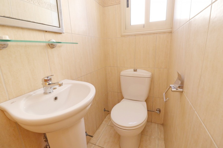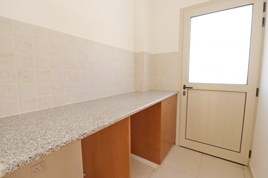 Upon entering you will find the spacious and bright lounge and dining area with sliding doors leading to the swimming pool area and the covered veranda. Ahead is the spacious separate kitchen, the laundry room with a back door which takes you to the outdoor area. You will also find the storage room and the guest cloakroom.