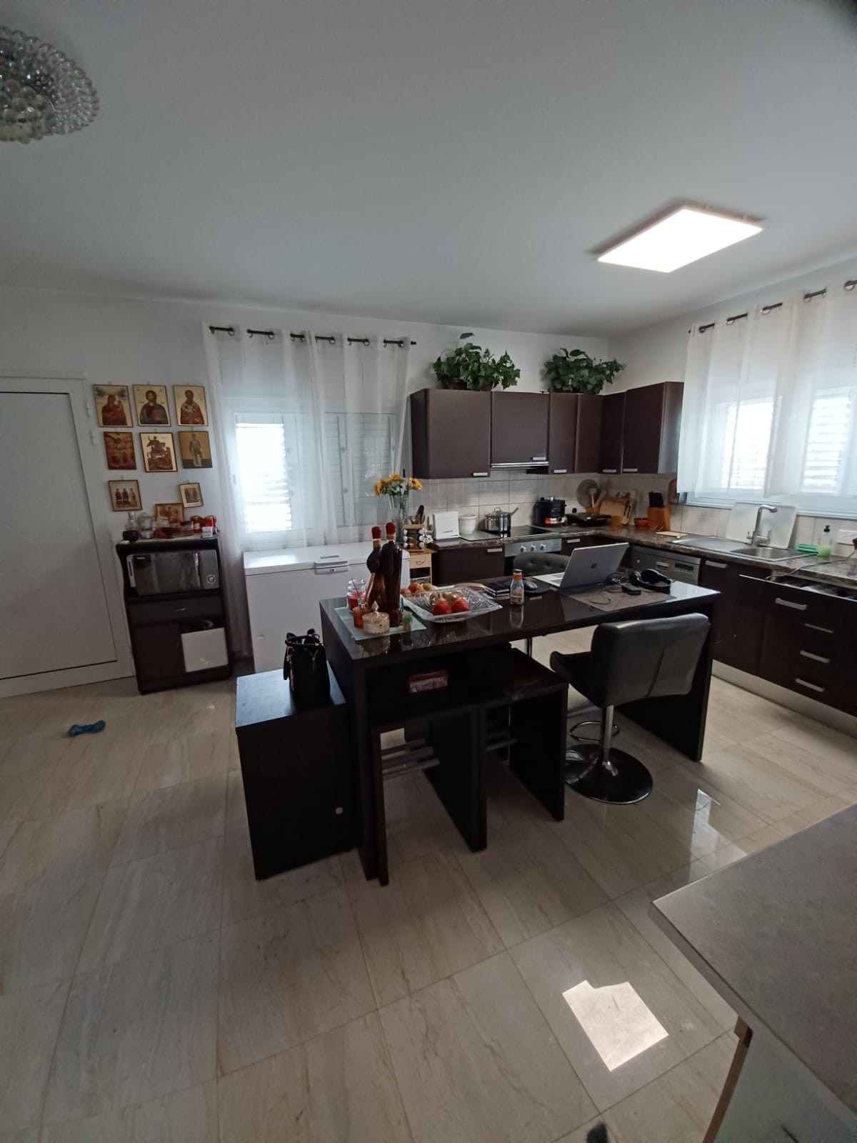 - Underfloor heating, Solar Photovoltaic (4 KW/h solar panels for electricity consumption) and water heating. • 22m² ground floor bedroom, which can be suitable for office dining or playroom. Granite tiles floor and marble on the stairs. Underfloor electric heating in all rooms and heating in bathrooms. • covered pergola on the ground floor. • 2 covered balconies with sea and sunset views • Storeroom/laundry-room under the stairs • Barbecue zone with storage • Fireplace with special Owen & door • Pressure system • Electric water heater • Solar water heater • Double glass windows with Metal shatters • Big Garden with following fruit frees lemon, mandarin, grapefruit, fig, nectarine, plump etc. and palms. The garden has a watering system.