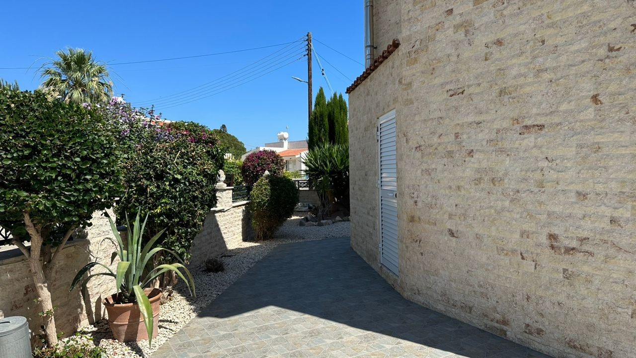 For sale A beautifully designed and very spacious 3 bedroom (plus study room) luxurious and elegant, detached two-storey villa, built in an area of unique natural beauty in the picturesque town of Peyia. Erected at a cul-de-sac and situated between two streams with exceptional vegetation, the property is perfectly secluded and offers full privacy. The famous Coral Bay beach is only 3 minutes away and Peyia town shops and facilities within walking distance.
