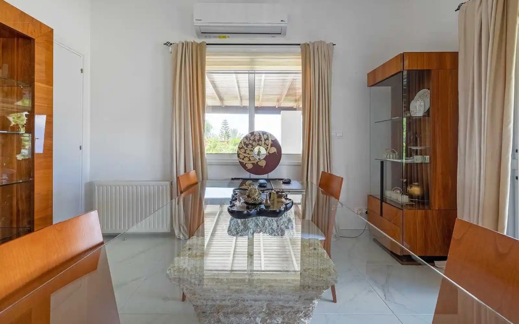 These include a clubhouse with restaurant facilities, a swimming pool and tennis courts. There is a medical centre adjacent to the clubhouse and all are within a couple of minutes’ drive from the property. Paphos Town and the International School of Paphos are a convenient 10-minute drive away.