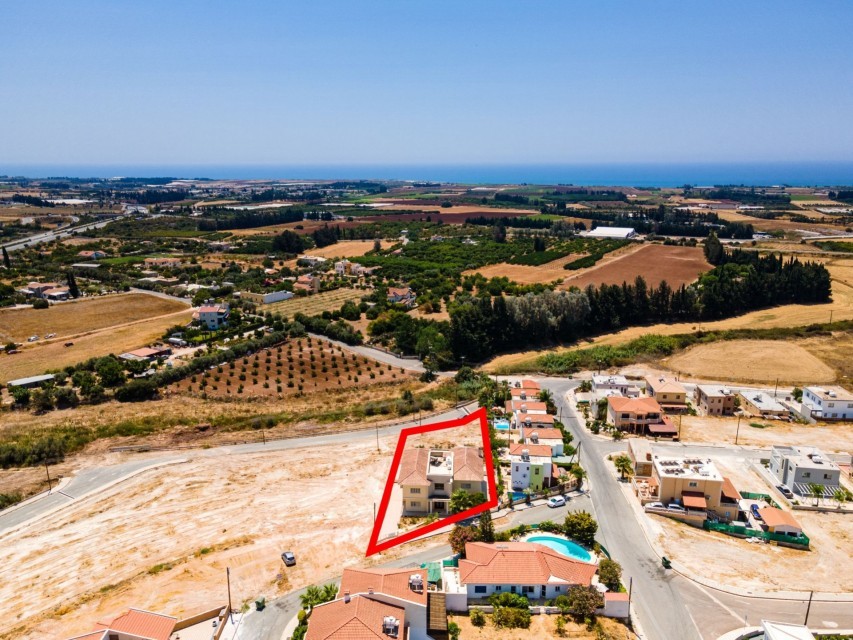 A luxury 5-bedroom house in Timi, Paphos, with a covered internal area of approximately 404 sq.m., covered verandas of 78 sq.m., and a basement of 216 sq.m., erected within a field of 2.408 sq.m.