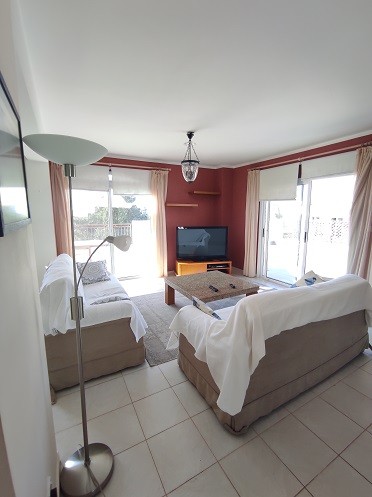 Property Features: This spacious property has 2 levels, on the lower level there are 3 double bedrooms, with fitted wardrobes, all of them featuring en suite facilities. On the upper floor there is an open plan spacious living and dining area and generous large kitchen separated by breakfast bar. Large patios from almost every angle of the upper floor give access to a massive veranda, offering majestic views of the sea, the surrounding green areas and to projects communal swimming pools. This property is in excellent condition.