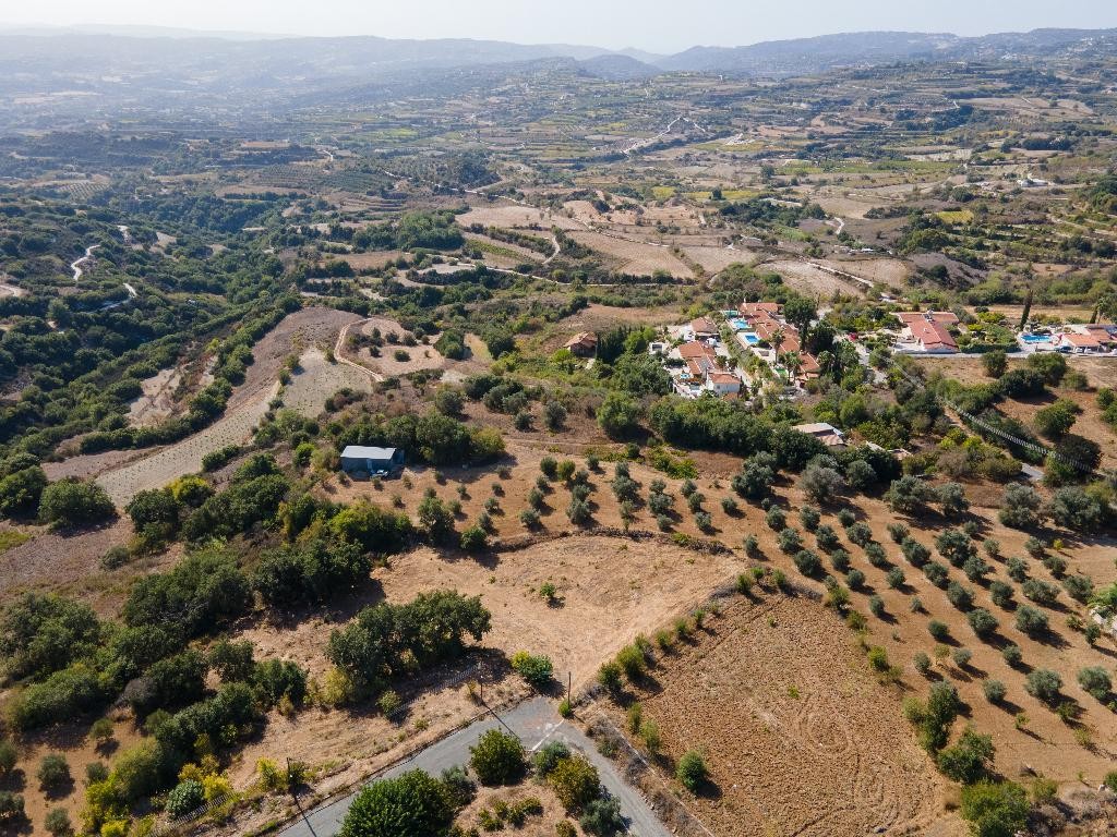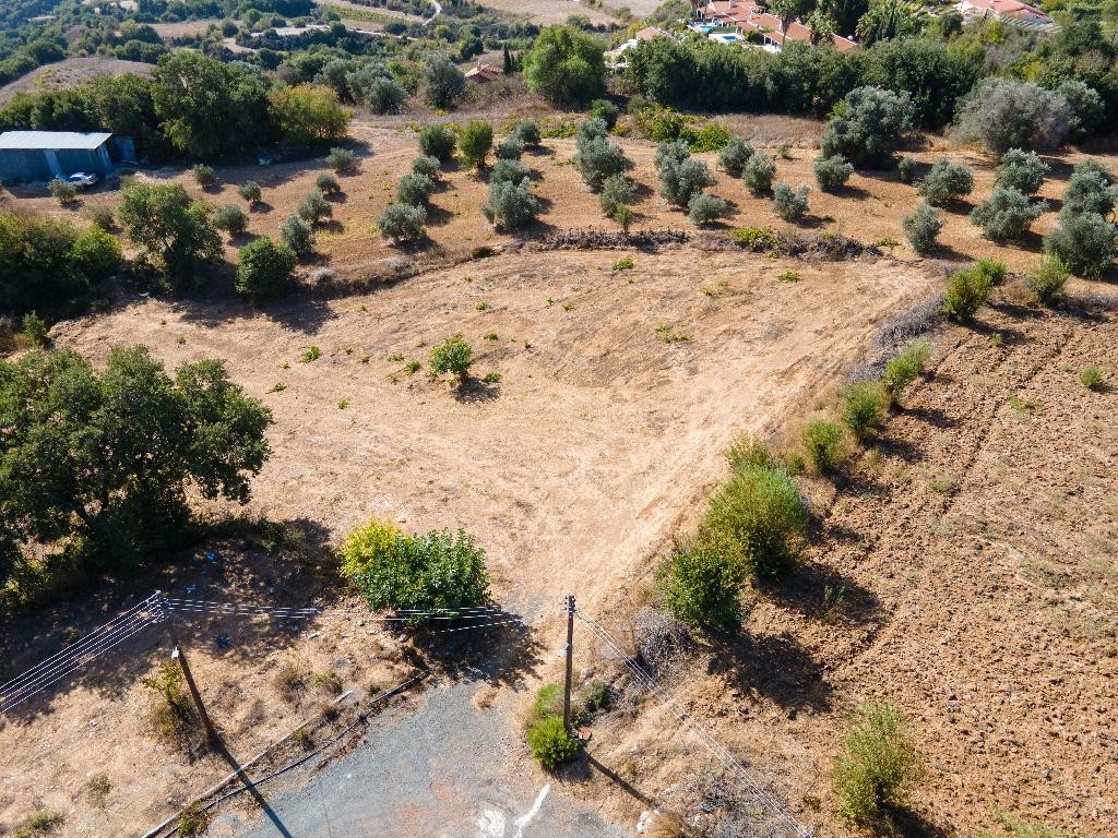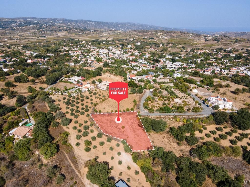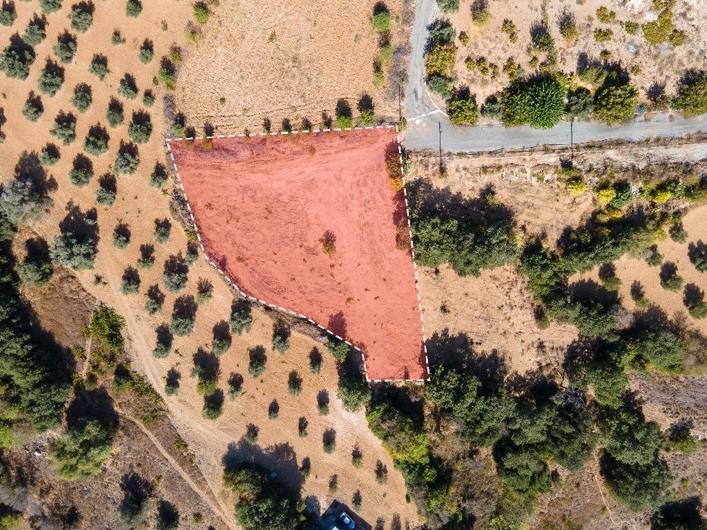 Residential field for sale in Polemi community, in Paphos District. It has an irregular shape, a sloping surface and abuts partially onto a registered road along its northwestern boundary, with a frontage of approximately 10 m.