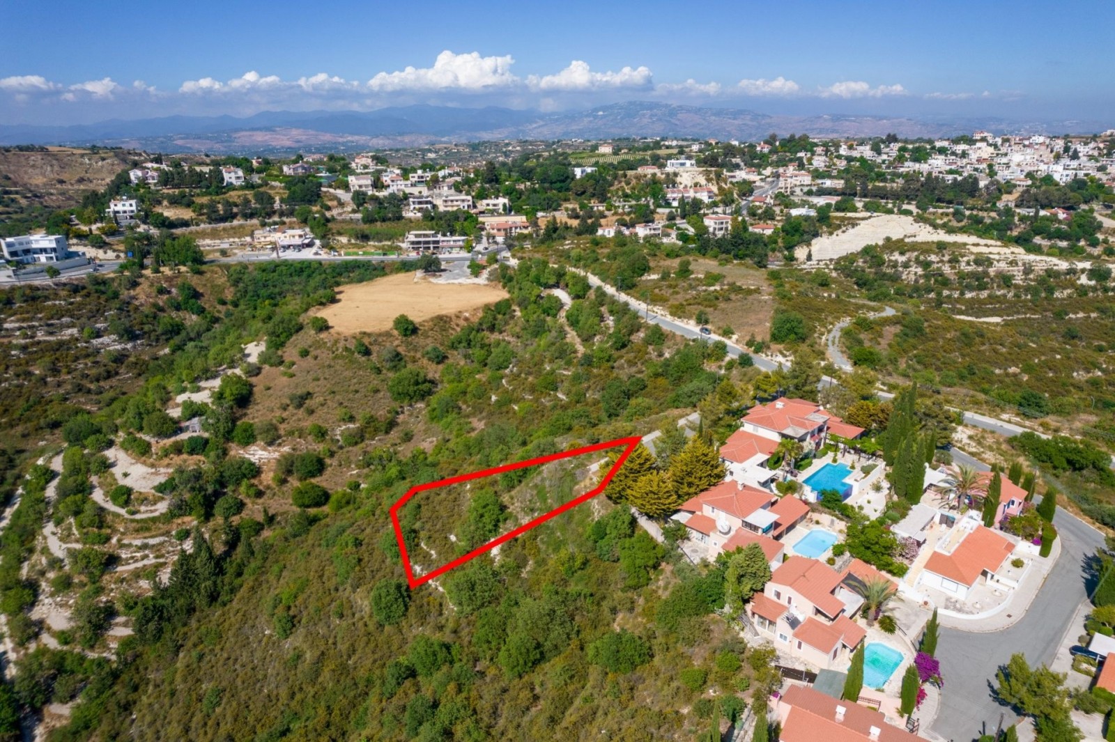 Residential Plot for sale in Tsada, Paphos. It has a total surface of 825sqm, an irregular shape and lies on a slight slope surface.
