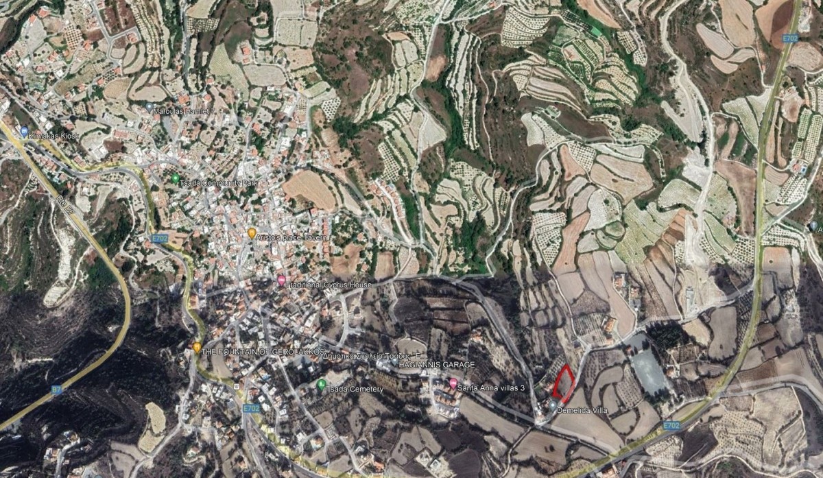 The asset is a residential field in Tsada community, Pafos district. It is located 1.2km northwest from Minthis Golf Club, approx. 1.1km northeast from Olympos community and 700m southeast from Tsada's community center. The surrounding area of the asset is residential towards the community of Tsada and agricultural externally.
