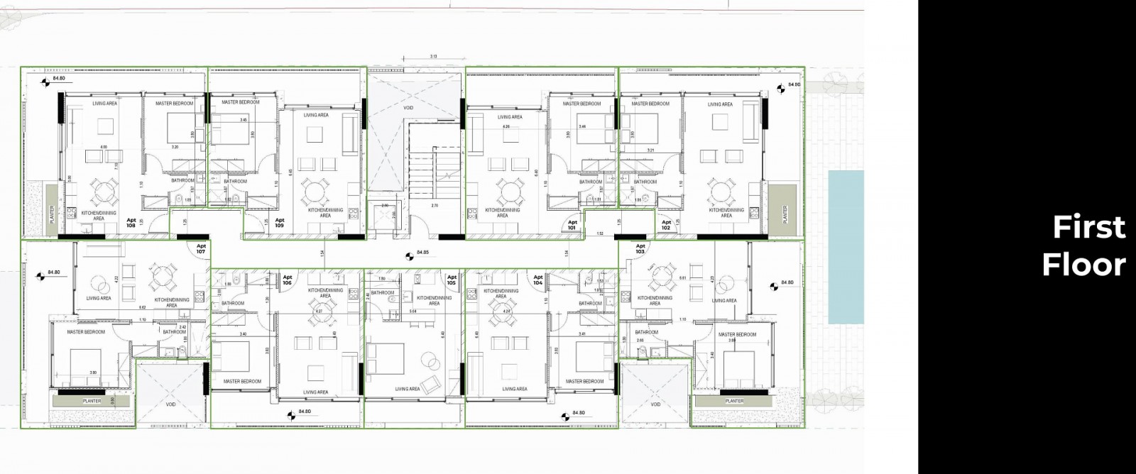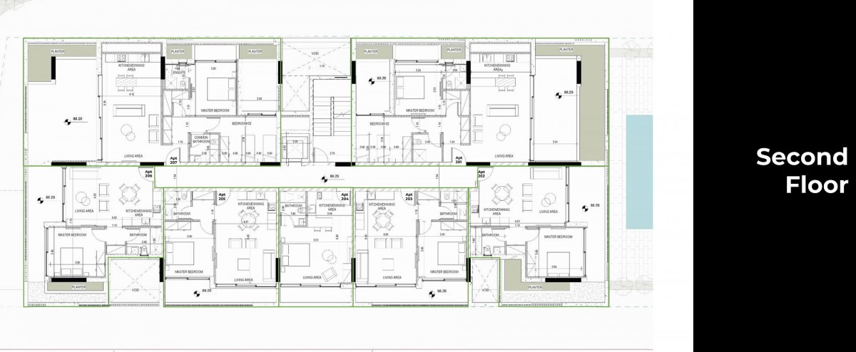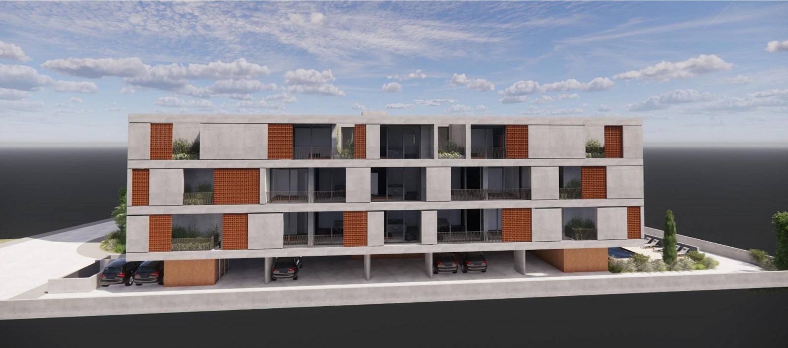 Modern residential complex in the area of Town Center Paphos. The building covers three floors and offers a total of 21 carefully designed apartments: 12 spacious one-bedroom apartments, 6 two-bedroom apartments and 3 stylish studios.